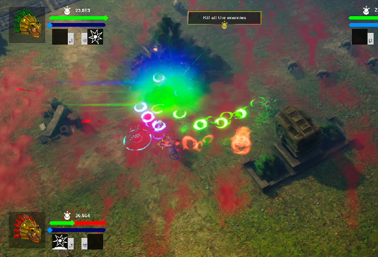 Sun Warriors is an online multiplayer isometric shooting game, in a world dominated by two gods, for up to 4 online players.